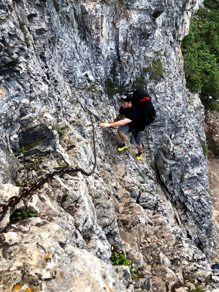 At the top of the chain section, we were treated to the most stunning view of the valley below. The first thought that came to my mind was that it looks as though we were gazing upon the Canadian Rockies version of Yosemite Valley!