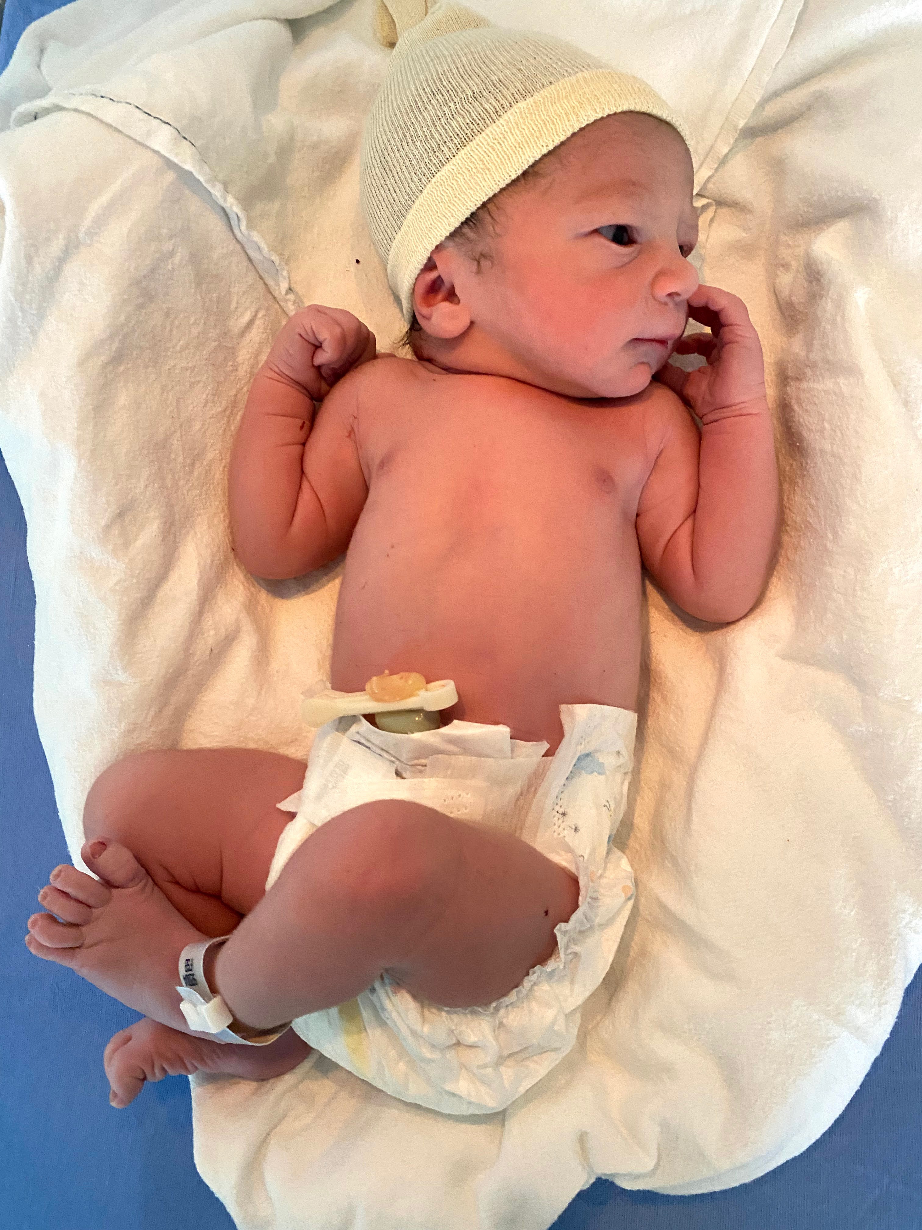 By 9 am, Dr. Jantzie told us that I was just about ready to push the baby out! My body had already at this point naturally felt the need to push during contractions, but there was still a little bit of a “lip” of my cervix remaining and I was told to resist pushing during the net few contractions to allow the rest of my cervix to fully open. It took all of my focus and might to resist pushing and used breath work to get through the next three contractions, after which the Dr. told me the baby was ready to come out and I could start pushing! I lay on my side in the bed and held my thigh up and began using my deep breathes to push baby out. Moving from contractions to pushing was such a relief! Although still painful, the pain felt more purposeful as I knew the end was near and soon I would get to meet my little one.