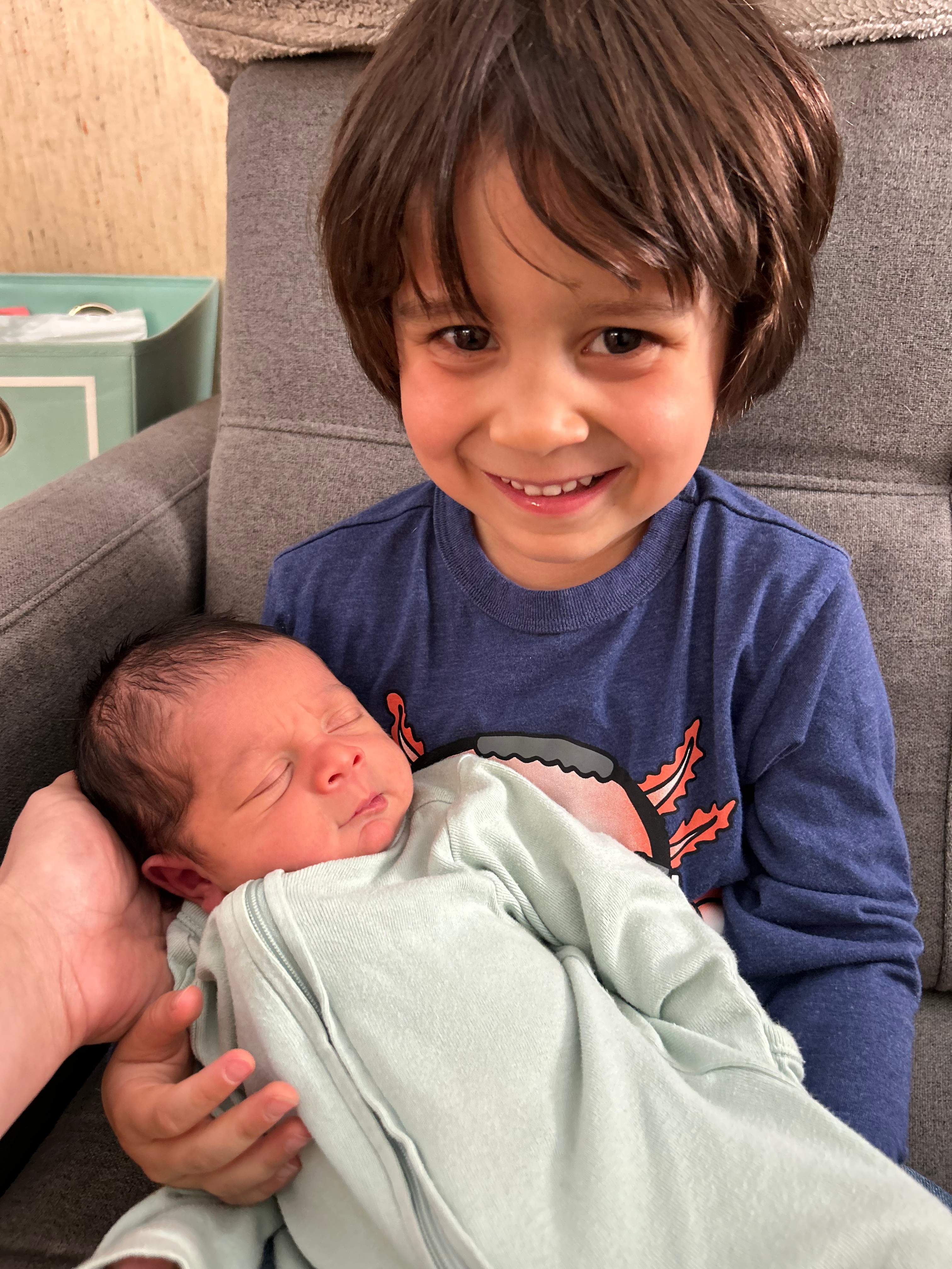 While lying in bed I face-timed my parents and my sister to let them know the good news – I think they were a bit surprised by how quickly Robin arrived! Ryan called Gigi and Augie, and since the science fair had just wrapped up, we asked them to come to the birth centre to meet Robin for the first time. I think the whole new environment and cluster of new faces was a bit overwhelming for Augie who refused to come into the room to meet Robin, plus he was pretty freaked out by the newborn baby cries he could hear! He told Ryan “I think I should wait to meet him once he turns three of four!” which I thought was hilarious. (His apprehension was short lived, as Augie is officially obsessed with his little brother now!)